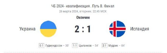 Сборная Украины вышла в групповой этап Евро-2024, одержав волевую победу над сборной Исландии