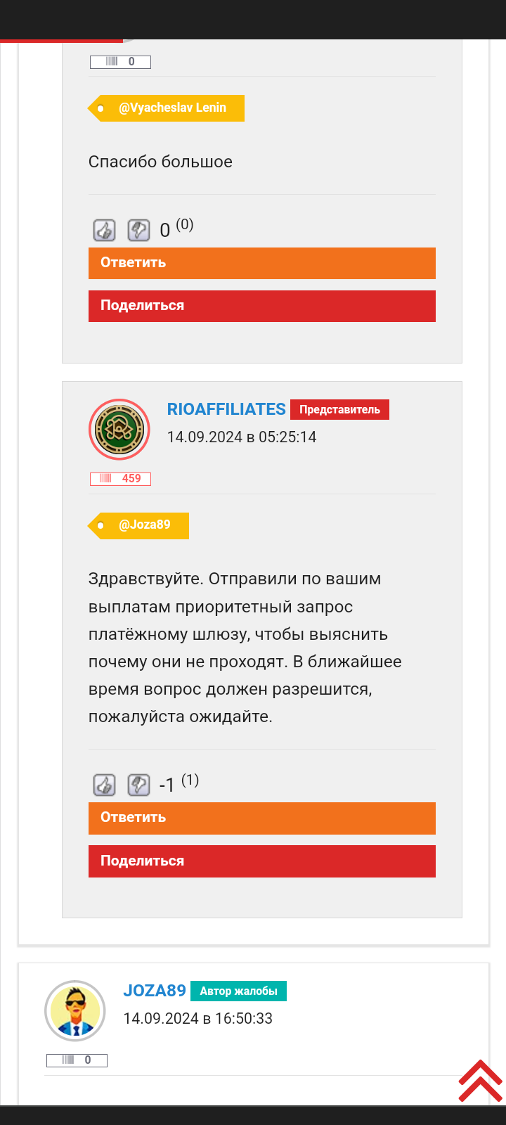 А есть те кто писал жалобу на Риобет за последний месяц и нашли всё-таки деньги? Если жалобы решаются то конечно не стоит добавлять казино в ЧС. А если только копятся, то можно и подумать на счёт этого.