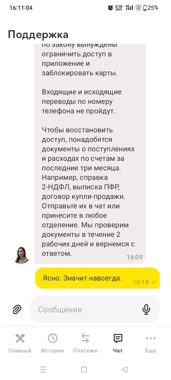 Сорокин!!!Забыть и не вспоминать про это днишко и не в коем случае туда не лезть и не пользоваться этим вот💩💩💩не ходить после разблокировки,если удастся разблокировать,но думаю на первый раз удастся.Куда переводили ,сказать как есть, крипту покупал,продавал,тем более тут как раз обмен покупка крипты в телеге как доказательство ,которые и нужно предоставить!Это не запрещено и инструкции у банка на отправку тебе в ЧС не будут иметь место.