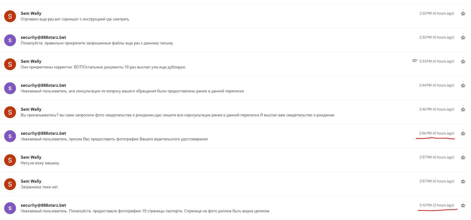 Абсолютно все документы,которые я выслал 2 дня назад – я отправил их 10 или 11 раз (теже фото) только заново и их наконец то приняли
