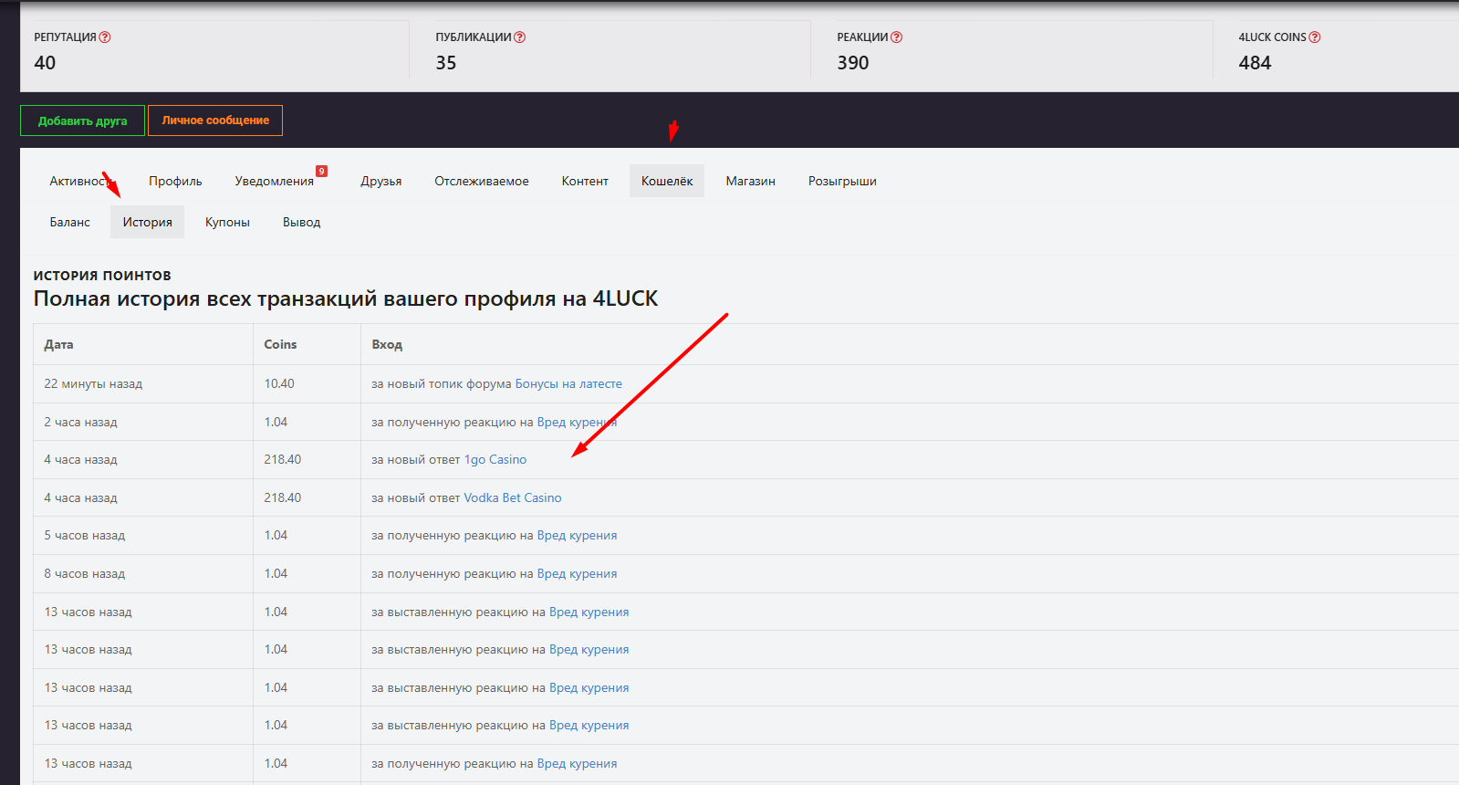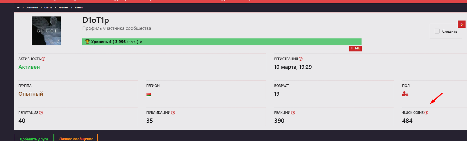 У раздзеле Агульныя пытанні ёсць уся інфармацыя аб сістэме ачкоў форума, у некаторых раздзелах 4luck coins не налічваюцца.
