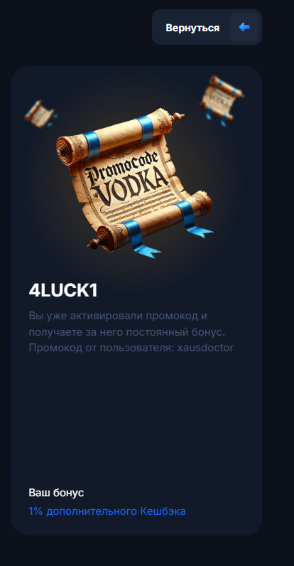 На данную промо-акцию распространяются общие правила и условия, а также бонусные правила казино Vodka.