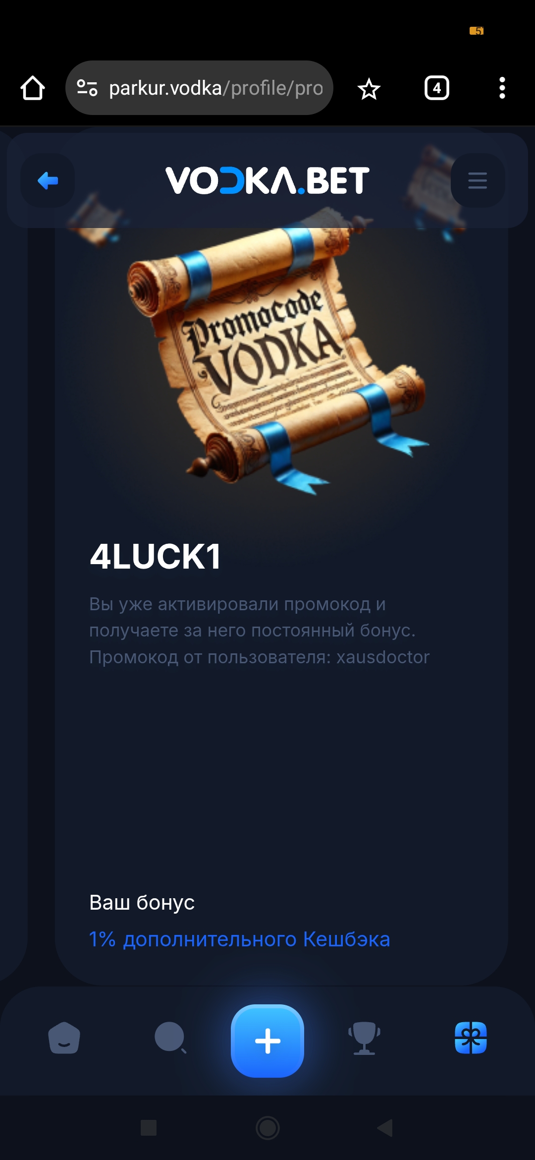[Скриншот профиля казино с видимым кодом 4LUCK1]