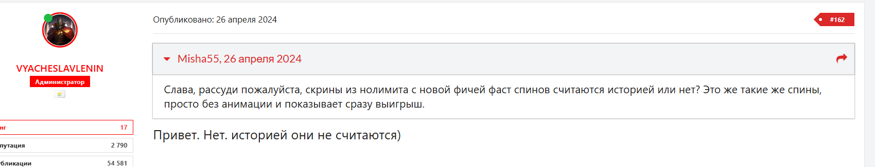 Отследить и то и другое конечно можно в админки, но сотрудники латеста к ней отношения не имеют, а верить в то, что манагер будет сидеть и чекать каждый скрин – не верю. Позиция водки вообще тут скорее всего: вот бабло, “покупаем” ленту скринов что бы хейт снизить по поводу РТП и отдачи. Отсюда и х50 всего, что бы количество было большое, так как всегда в таких гонка было от х100.