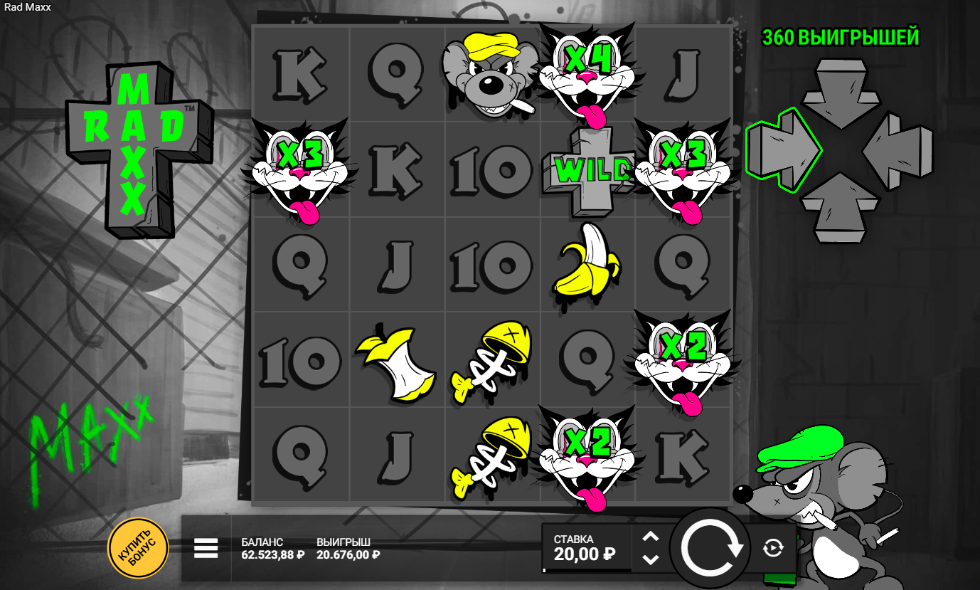 Rad Maxx — это продолжение cлота Rip City. В главной роли всё так же мышь Макс и кот в роли wild в бонусной игре. Механика тоже изменилась и стала не менее интересной.