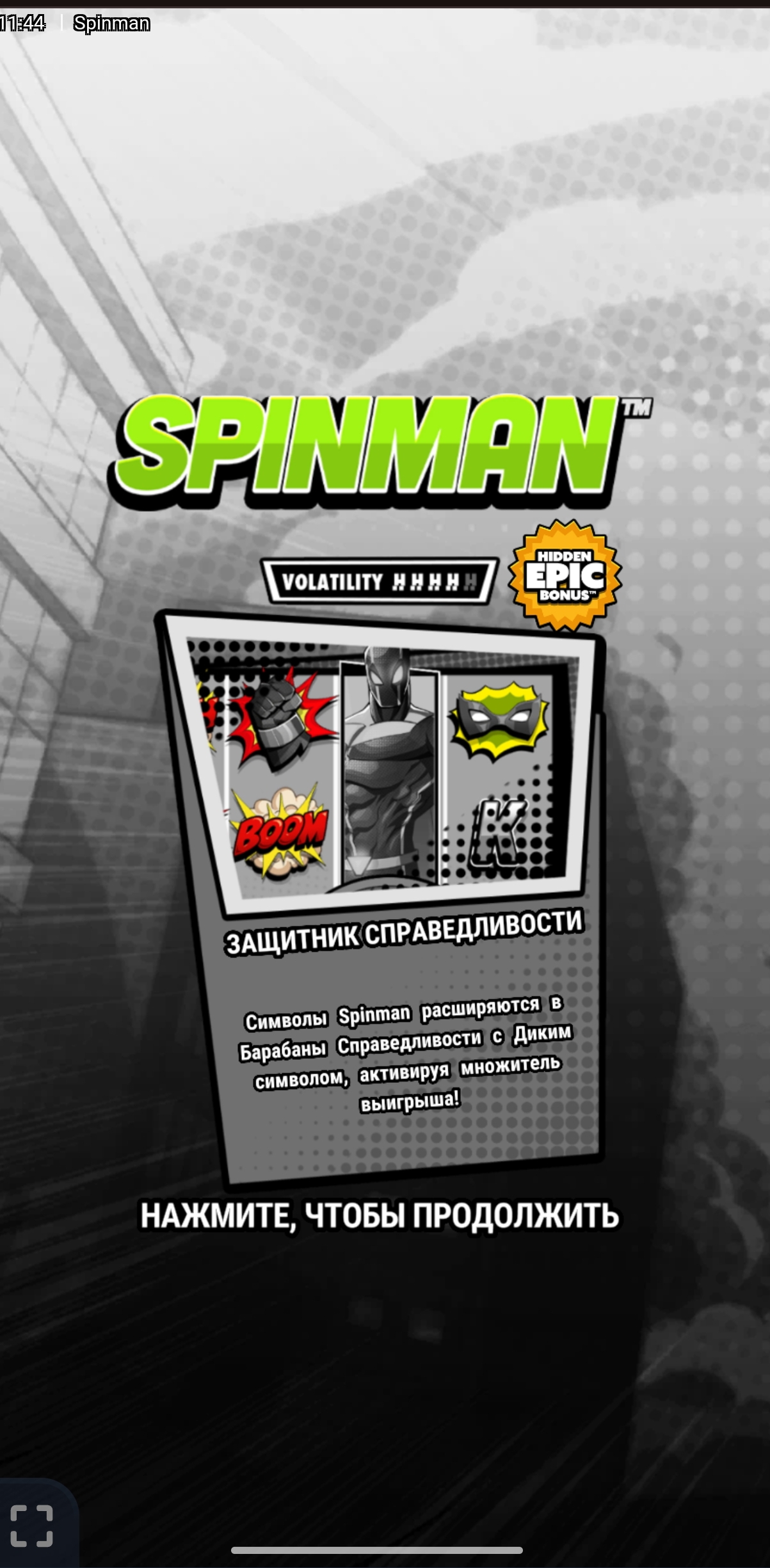 Всем привет)) Слот Spinman мне очень понравился. Первое, что бросается в глаза при запуске Spinman — это качественная графика и анимация. Тематика слота выполнена в стиле супергеройского комикса, где главный персонаж — Spinman — выступает в роли защитника и борца с хаосом, что добавляет игре оригинальности и харизмы.