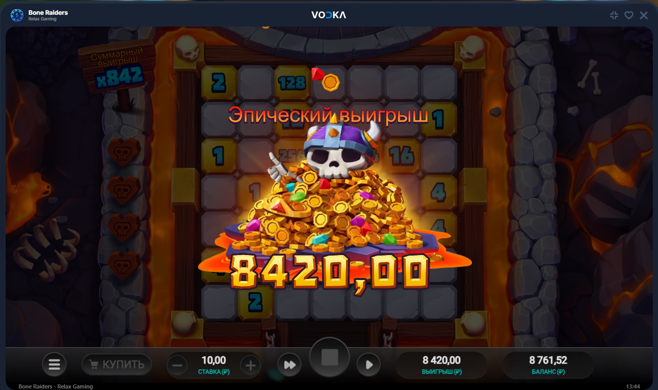 Vodka, Bone Raiders, x842, решил попробовать слот и сразу купил бонус