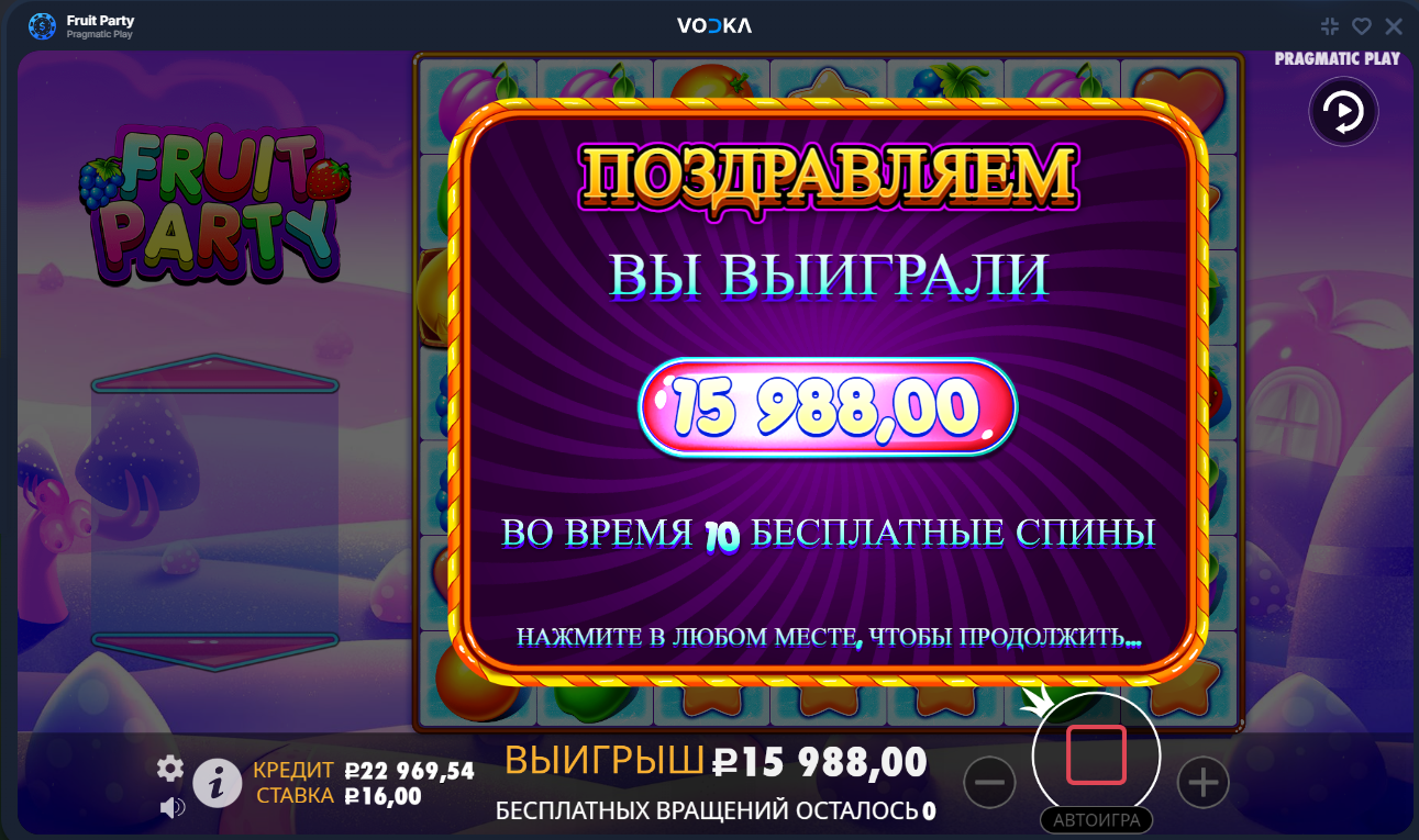Vodka, Gigantoonz x452 и Fruit Party x999
