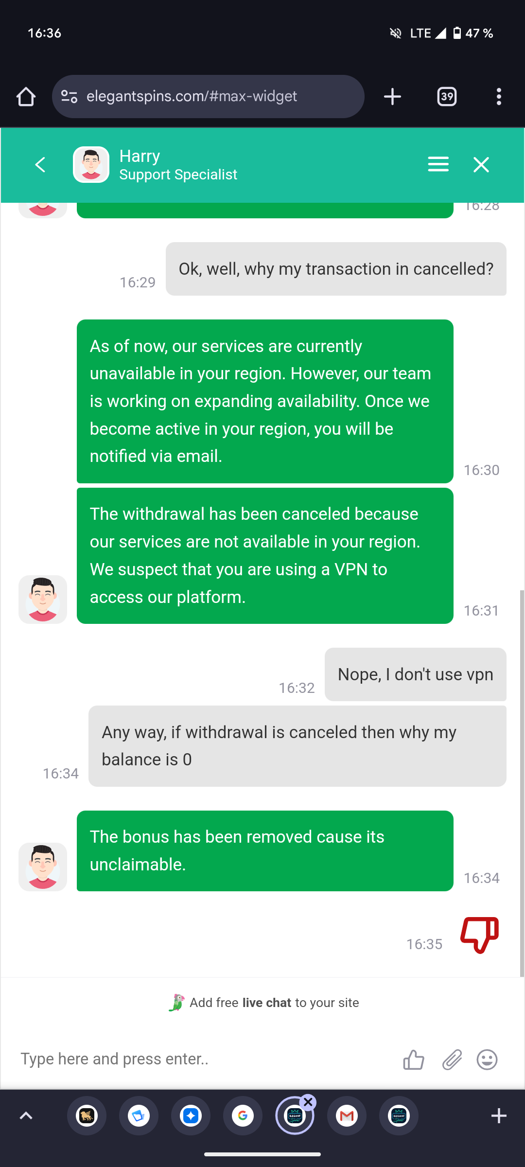Elegantspins послали после отыгрыша :/![]()