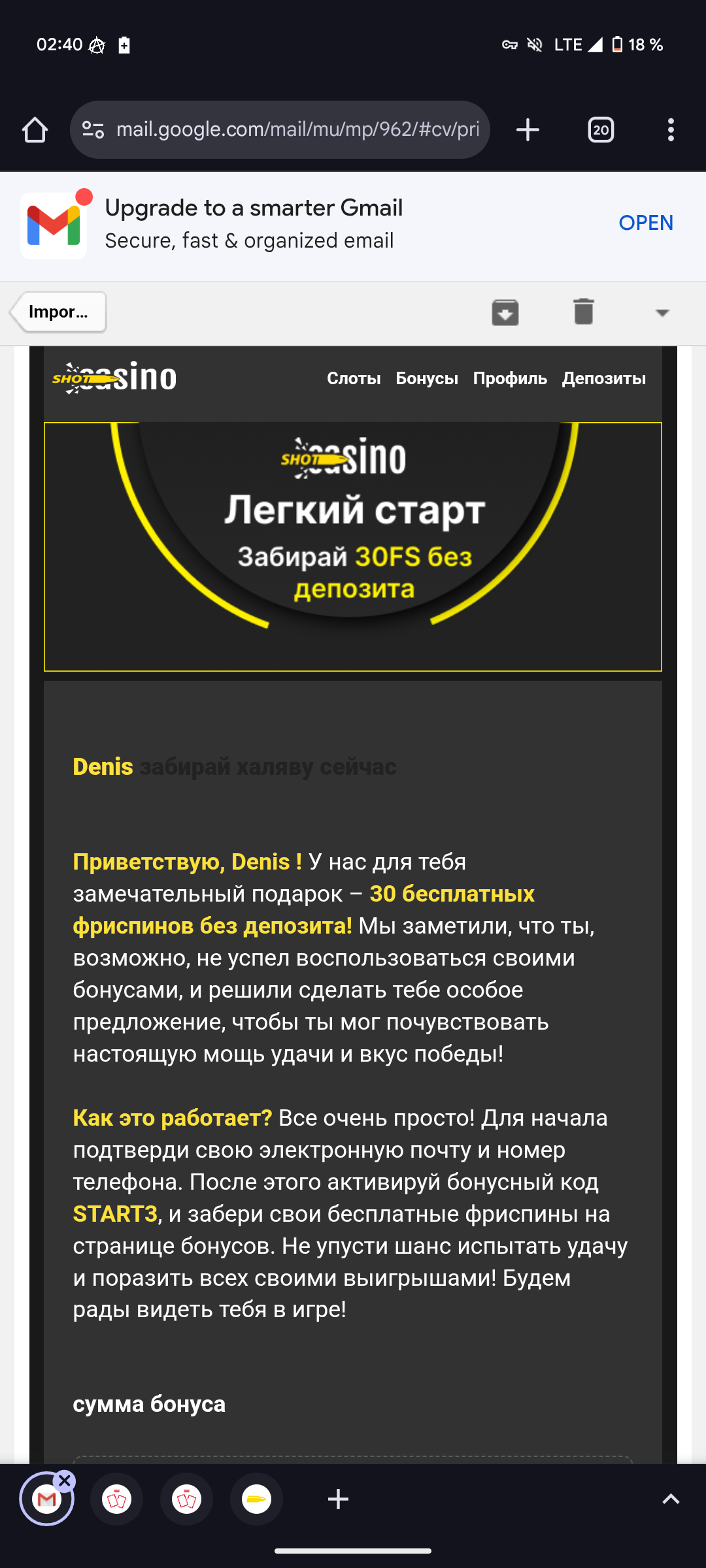 Spin788 пришел на почту